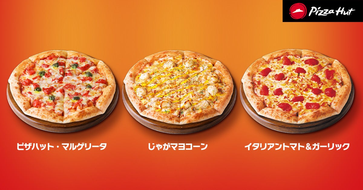 ※対象ピザ:「ピザハット・マルゲリータ」「じゃがマヨコーン」「イタリアントマト&ガーリック」