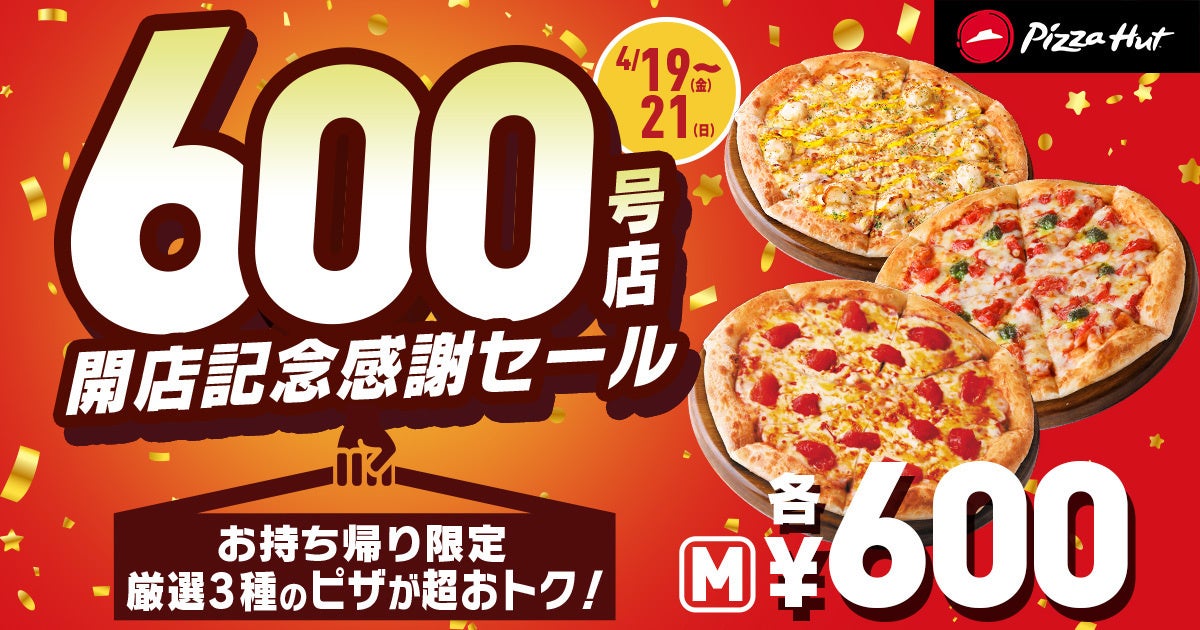 3種類全て買っても1,800円!ピザハット600店舗達成をピザパーティーで私たちと一緒にお祝いしてください!