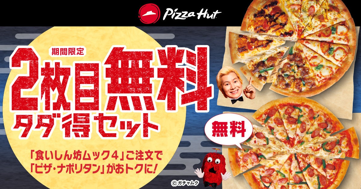「食いしん坊ムック4」ご注文で「ピザ・ナポリタン」が無料になるおトクなセット「2枚目無料 タダ得セット」をご提供!お持ち帰りなら、さらにおトクな特別価格で提供します!