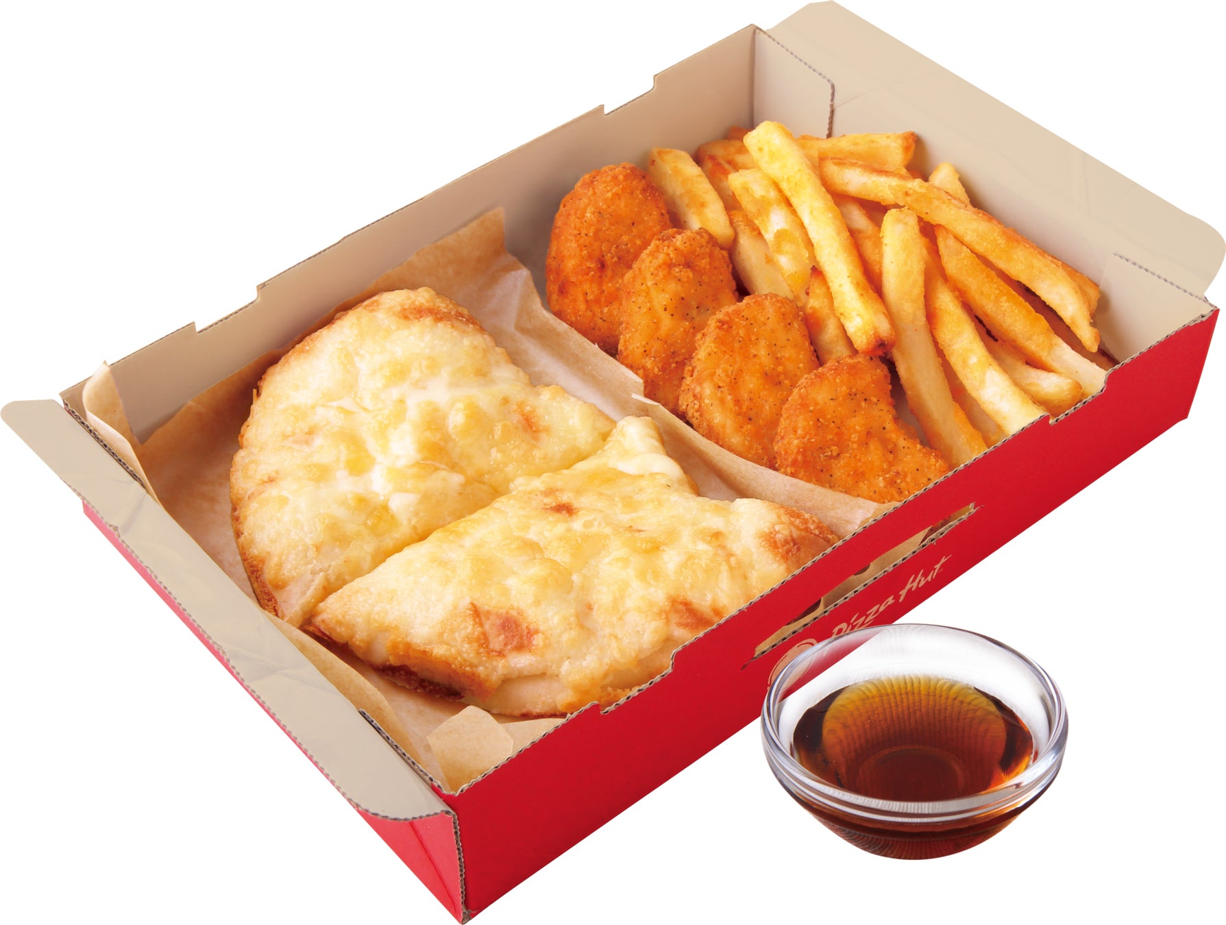 セット内容:チーズのび~るつつみ焼きピザ、“ハット”フライポテト、チキンナゲット4個