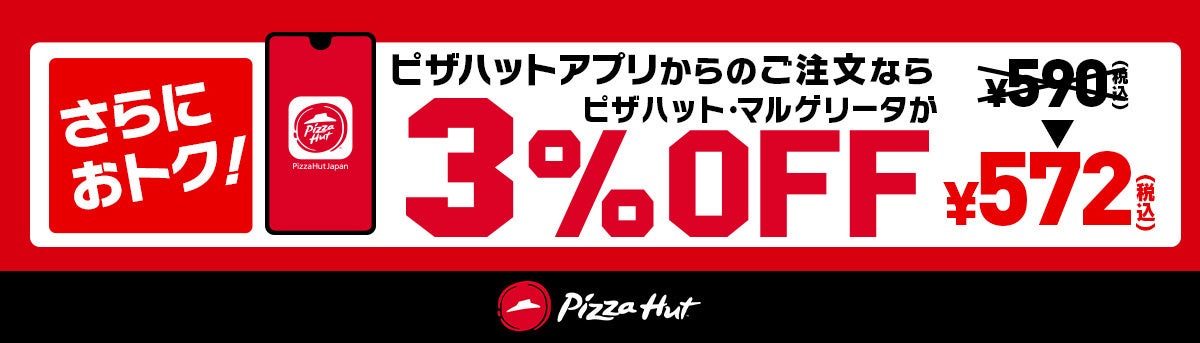 〜「ピザハット・マルゲリータ」がお持ち帰りで70%OFF!アプリからの注文なら更に3%OFF!〜