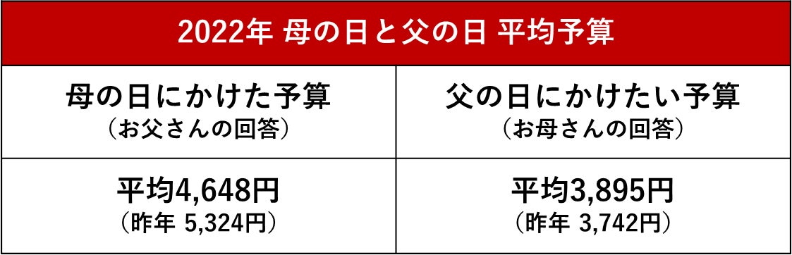 ・今年も「母の日にかけた予算」VS「父の日にかけたい予算」を比較!差は縮まったものの“母高父安”の傾向変わらず