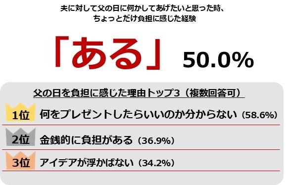 ・「父の日が負担」と回答したお母さんは約半数!理由トップ3は「何をプレゼントしたらいいのか分からない」「金銭的に負担」「アイディアが浮かばない」