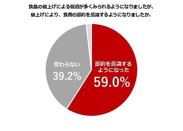 昨今多数のメディアで食料品の値上げ報道が見られますが、その影響か59.0%のお母さんが「食費の節約を意識するようになった」と回答。さらに「父の日を負担に感じたことがあるか」という質問には約半数のお母さんが「ある」と回答し、その理由の上位として「金銭的に負担(36.9%)」が上がるなど各家庭の厳しい懐事情が明らかになりました。