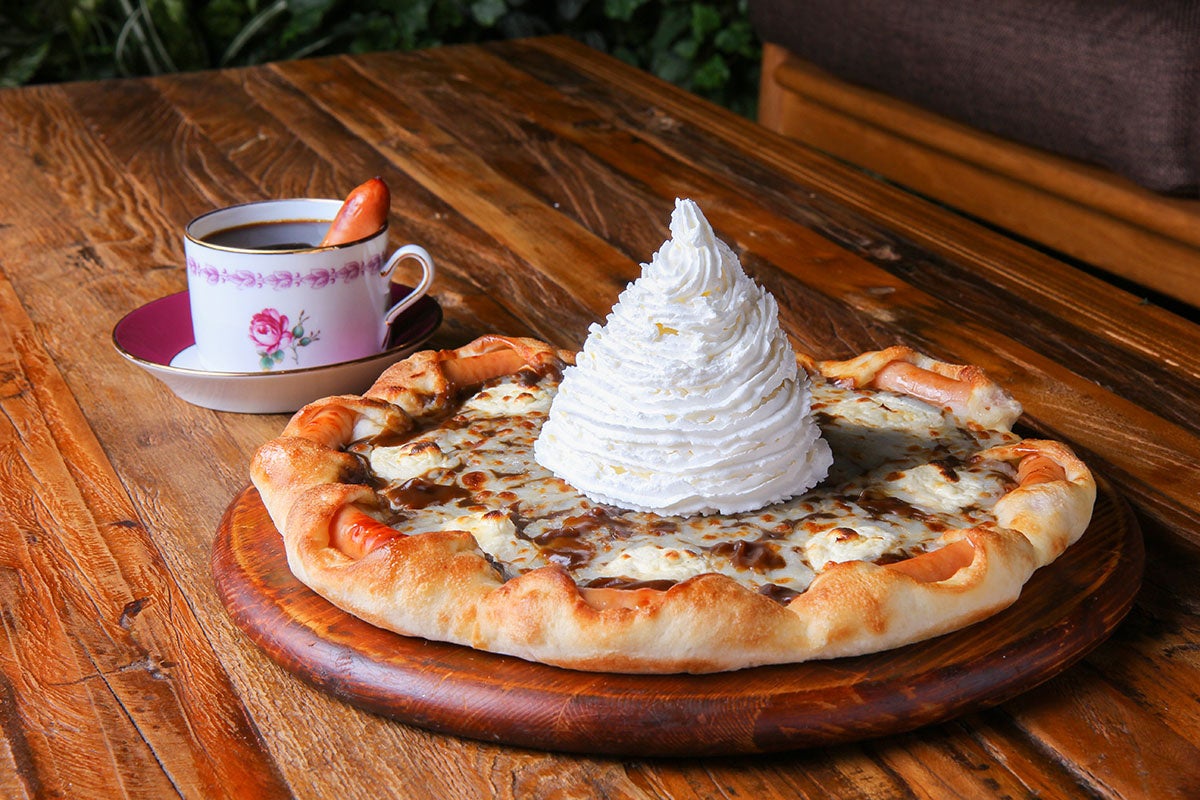 このピザは、ピザ全体にコーヒーソースを敷き詰め、深みのあるコーヒーの味わいを完全再現。トッピングのクリームチーズがコーヒーのコクを引き立てながら、マイルドな舌触りへと昇華。別添のホイップクリームをトッピングすれば、ビジュアルも味もまるで本物の「ウインナーコーヒー」そのもの。脇役だと考えられがちですが、実はピザ生地そのものの美味しさを味わえる“みみ”に、誤った「ウインナーコーヒー」に抱いていたみんなの勘違い“ウインナー”を包んじゃいました。アメリカでは定番のベーコン×メープルの組み合わせのようなクセになる「甘じょっぱさ」で、自信をもっておすすめできる味に仕上がりました。1枚のピザで“正解”と“勘違い”の「ウインナーコーヒー」が共存する、ちょっとカオスだけどクセになる味わいの1枚を是非お楽しみください。