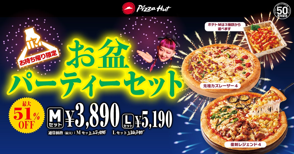 ピザハットは今年のお盆をおトクに美味しく過ごせるように、お二人様からファミリー、パーティーまで様々な場面でお楽しみいただけるセットが盛りだくさんの「ハットのお盆BIG SALE」をご用意しました。