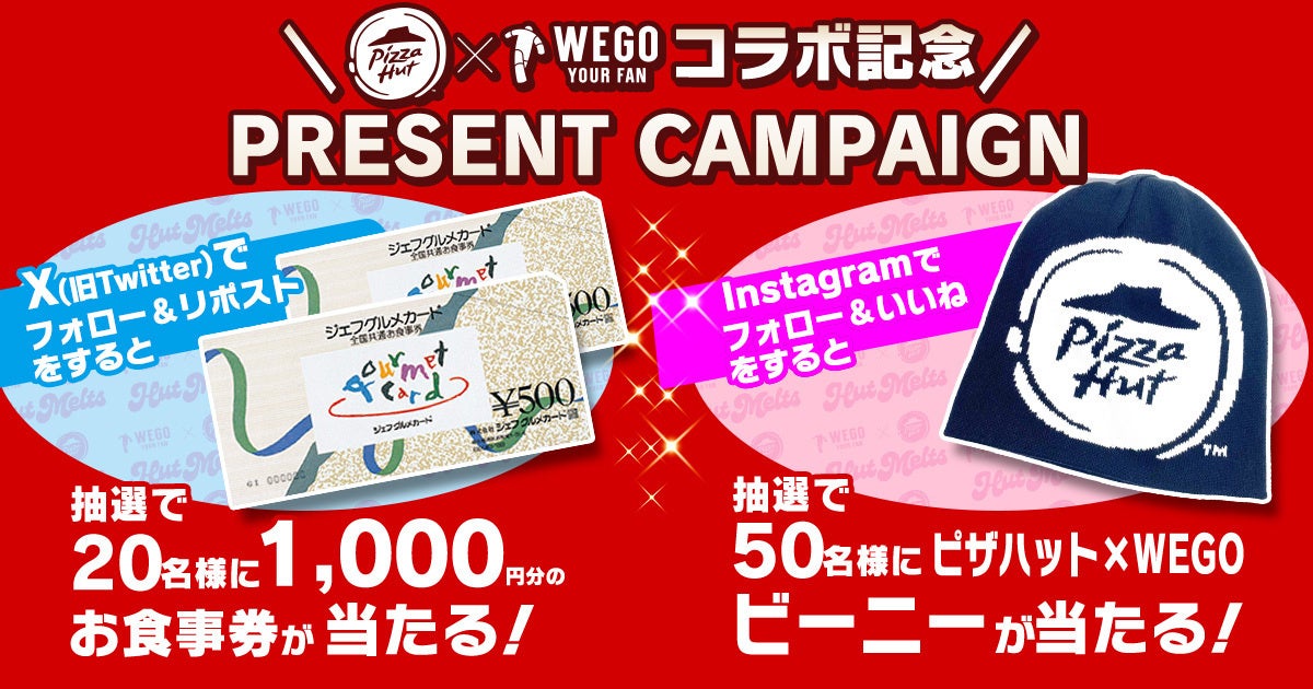 • ピザハット公式Instagram/X(旧Twitter)プレゼントキャンペーン同時開催!「お食事券」や「WEGO×ピザハットのビーニー」が当たる!