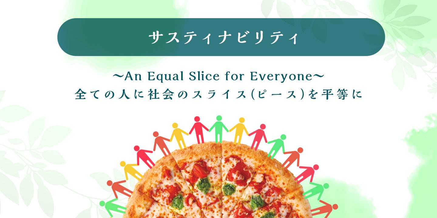 「 ~Equal Slice for Everyone~ すべての人に社会のスライス(ピース)を平等に」というメッセージは、世界共通のソーシャル・パーパスとして私たちピザハットが掲げている理念です。目の前のお客様に喜びを届けるだけではなく、「ピザのチカラ」で明るい社会の実現に貢献していきます。