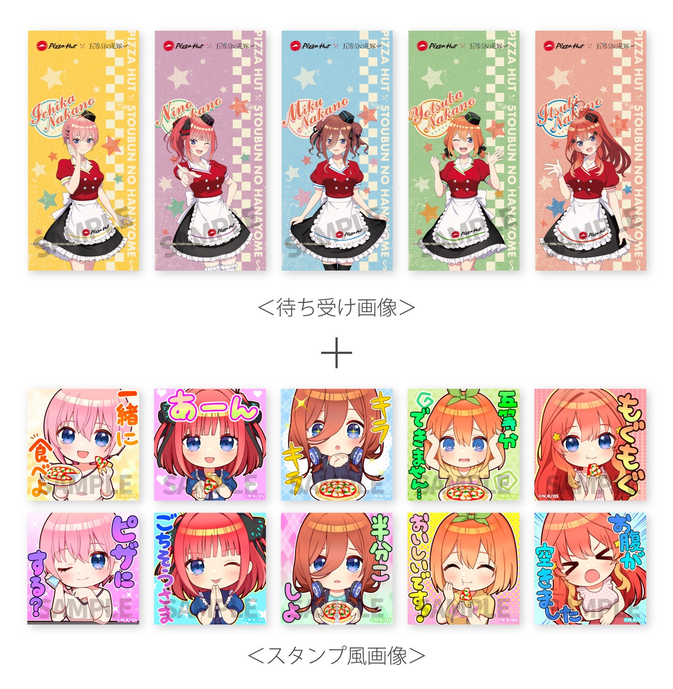 期間中に、ピザハットオンライン、または公式アプリにて税込1,000円以上(※1)ご注文の際、指定のクーポン『【五等分の花嫁∽】Web応募完了』をカートに入れてご注文された方の中から、抽選で50名様にアクリルスタンド(全5種)コンプリートセットが当たります。