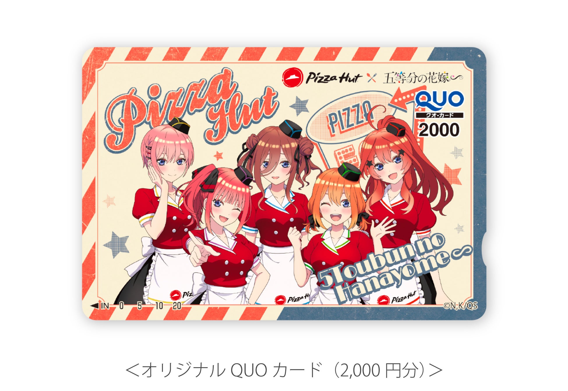 期間中に、ピザハット公式X(旧Twitter)アカウント「@Pizza_Hut_Japan( https://twitter.com/Pizza_Hut_Japan)」をフォローして、ピザハット公式アカウントが投稿する「#ピザハット_五等分の花嫁」が入ったキャンペーン投稿をリポストしてご応募完了。抽選で「オリジナルQUOカード(2,000円分)」が5名様に当たります。