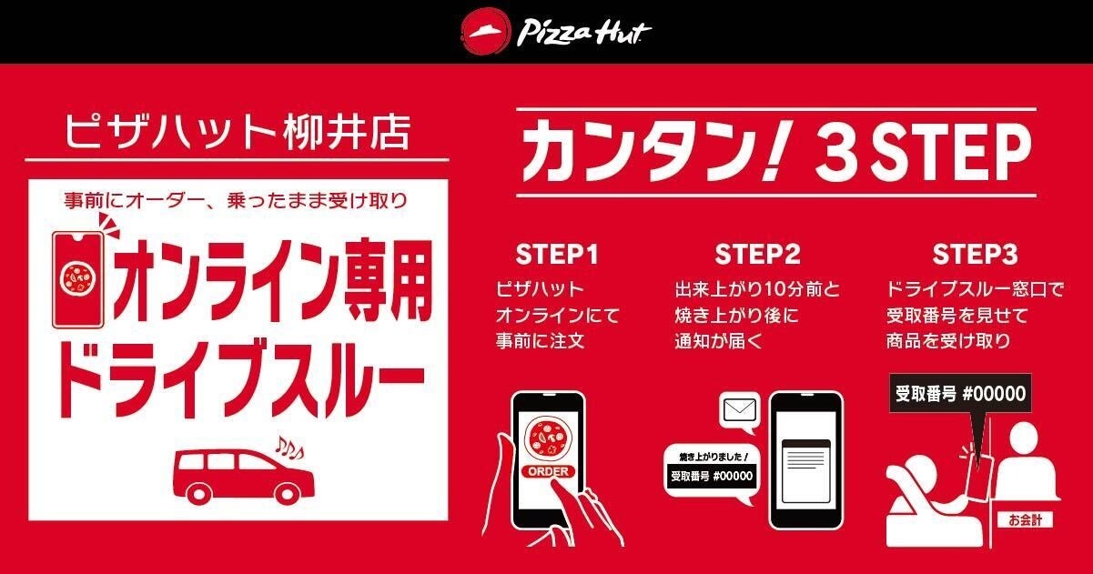 日本ピザハット株式会社(代表取締役社長:中村 昭一、本社:神奈川県横浜市、以下:ピザハット)が展開する世界最大級のピザチェーン「ピザハット」は、事前にオンライン注文いただくと、焼き上がり通知を受信後に乗車したままドライブスルーレーンで商品を受け取ることができる新サービス「オンライン専用ドライブスルー(ドライブスルーで受け取る)」を、2024年1月15日(月)より山口県にあるピザハット柳井店にて開始いたします。