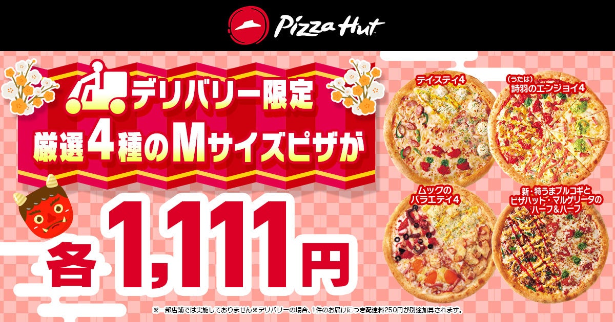 【デリバリー限定】大人気のあのピザも、今ならMサイズ1枚1,111円の衝撃プライス!