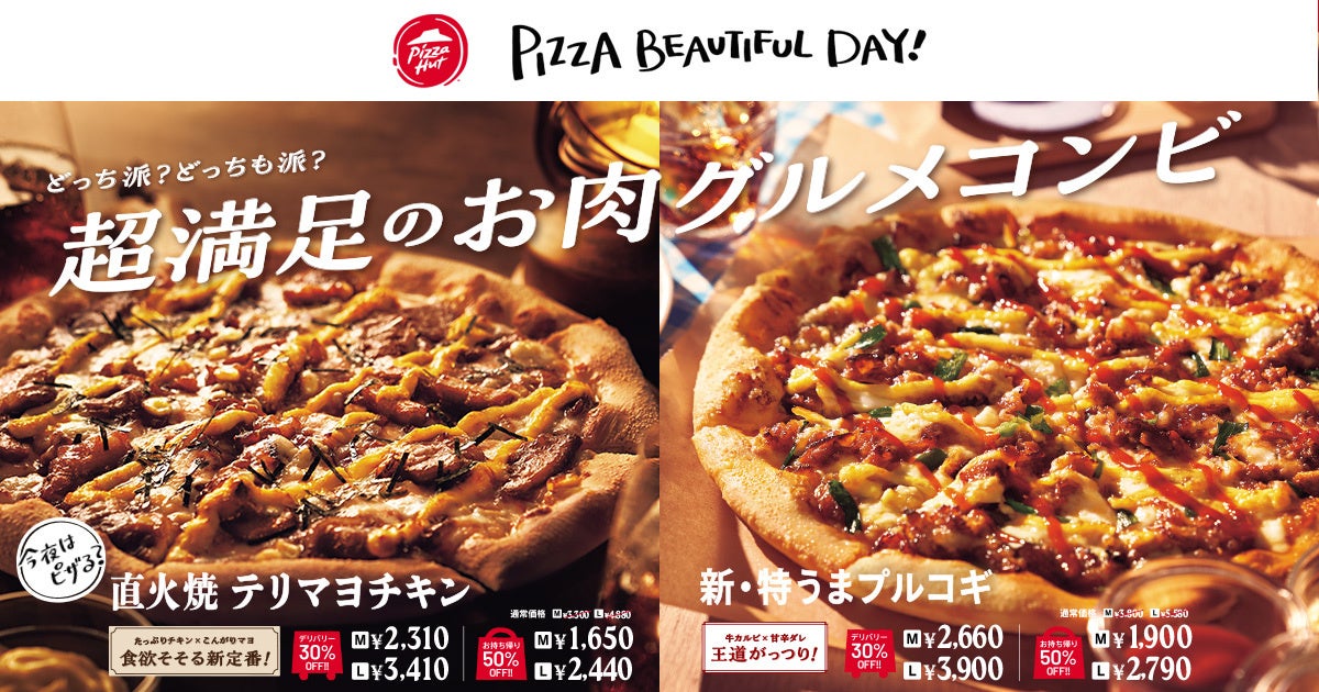 日本ピザハット株式会社(代表取締役社長:中村 昭一、本社:神奈川県横浜市、以下:ピザハット)が展開する世界最大級のピザチェーン「ピザハット」は、気温が上がって夏バテしがちな2024年6月17日(月)〜8月25日(日)の70日間限定でお肉たっぷりの「直火焼 テリマヨチキン」「新・特うまプルコギ」を含んだおトクな2つのセット商品をリリースいたします。 もちろん、「直火焼 テリマヨチキン」「新・特うまプルコギ」の2商品は期間中もお持ち帰りなら50%OFF、デリバリーなら30%OFFでお召し上がりいただけます。 夏バテ対策にパワーチャージしよう!