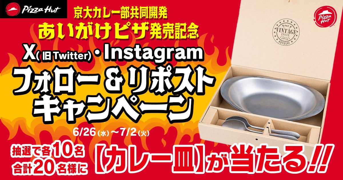 2024年6月26日(水)より、ピザハット公式X(旧Twitter)アカウントと公式Instagramアカウントにて抽選で10名様ずつ計20名様に、シンプルなデザインながら存在感のあるカレー皿とスプーンのセット【カレーセット2人用 ダブリン】が当たるキャンペーンを開催いたします。