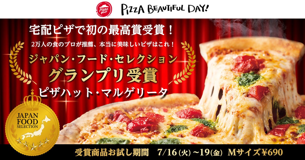 日本ピザハット株式会社(代表取締役社長:中村 昭一、本社:神奈川県横浜市、以下:ピザハット)が展開する世界最大級のピザチェーン「ピザハット」は、フードアナリストによる日本初の食品・食材の審査・認定制度「第77回 ジャパン・フード・セレクション」にエントリー。そこでなんと、ピザハットの美味しさを証明する代表作「ピザハット・マルゲリータ」が最高評価のグランプリを受賞いたしました!