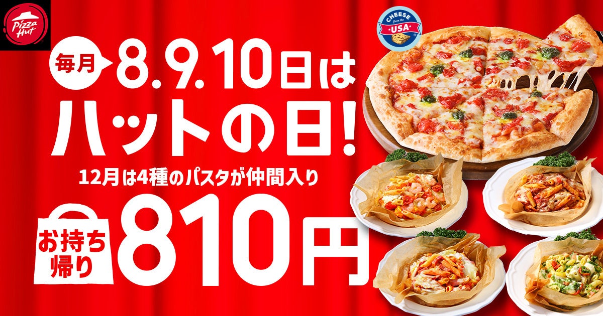 【毎月ピザハットの“ハットの日”は超おトク!】12月はピザだけじゃない!パスタもお持ち帰り810円で嬉しい3日間!
