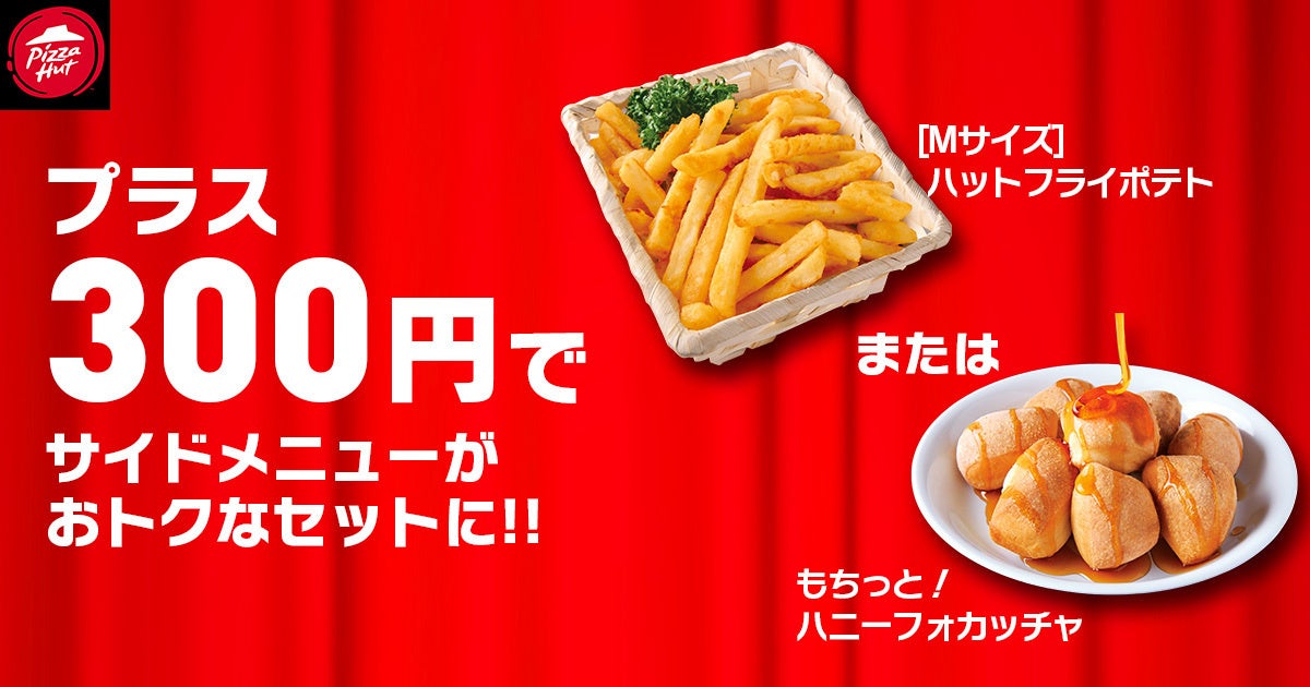 ハットの日対象のピザ及びパスタにサイドメニューがプラス300円で追加