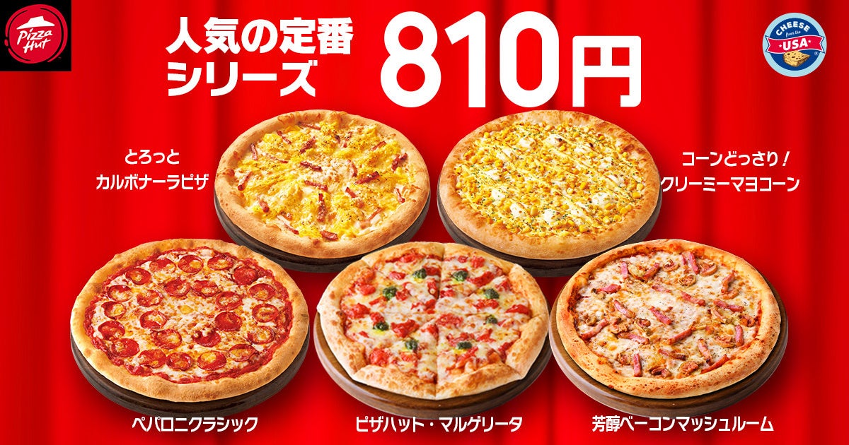 ※対象ピザ:「とろっとカルボナーラピザ」「コーンどっさり!クリーミーマヨコーン」「ペパロニクラシック」「ピザハット・マルゲリータ」「芳醇ベーコンマッシュルーム」