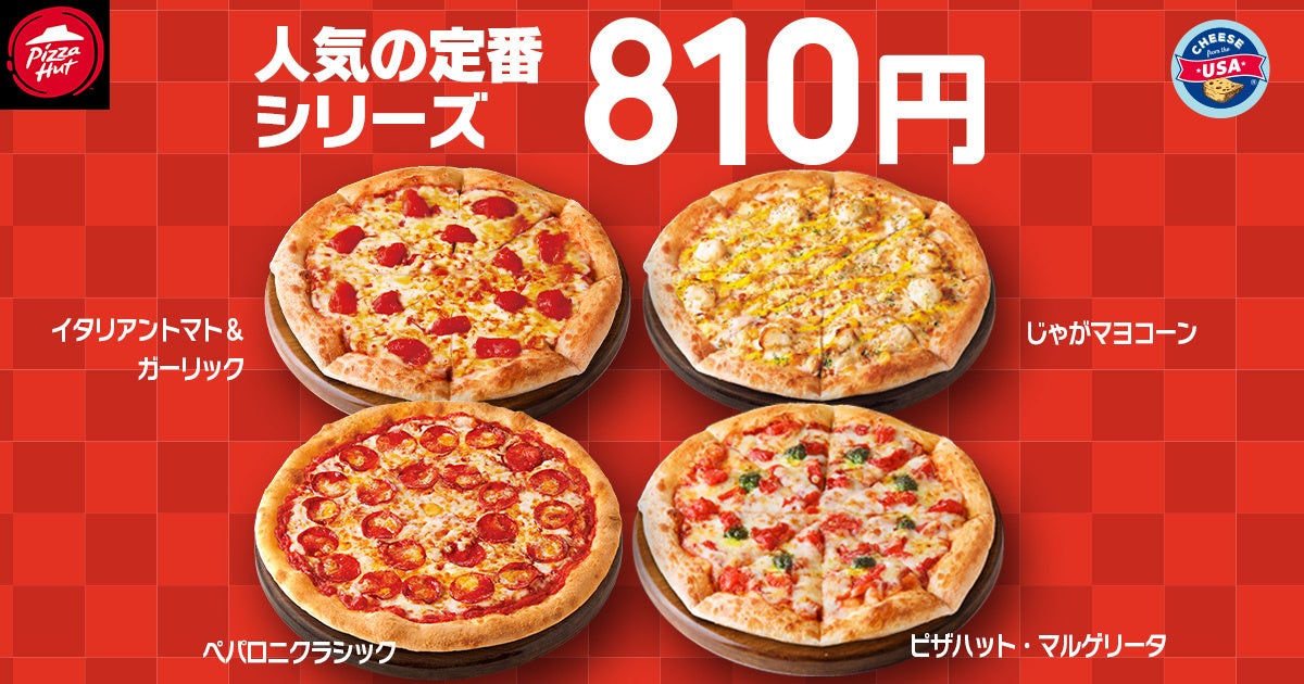 ※対象ピザ:「イタリアントマト&ガーリック」「じゃがマヨコーン」「ペパロニクラシック」「ピザハット・マルゲリータ」